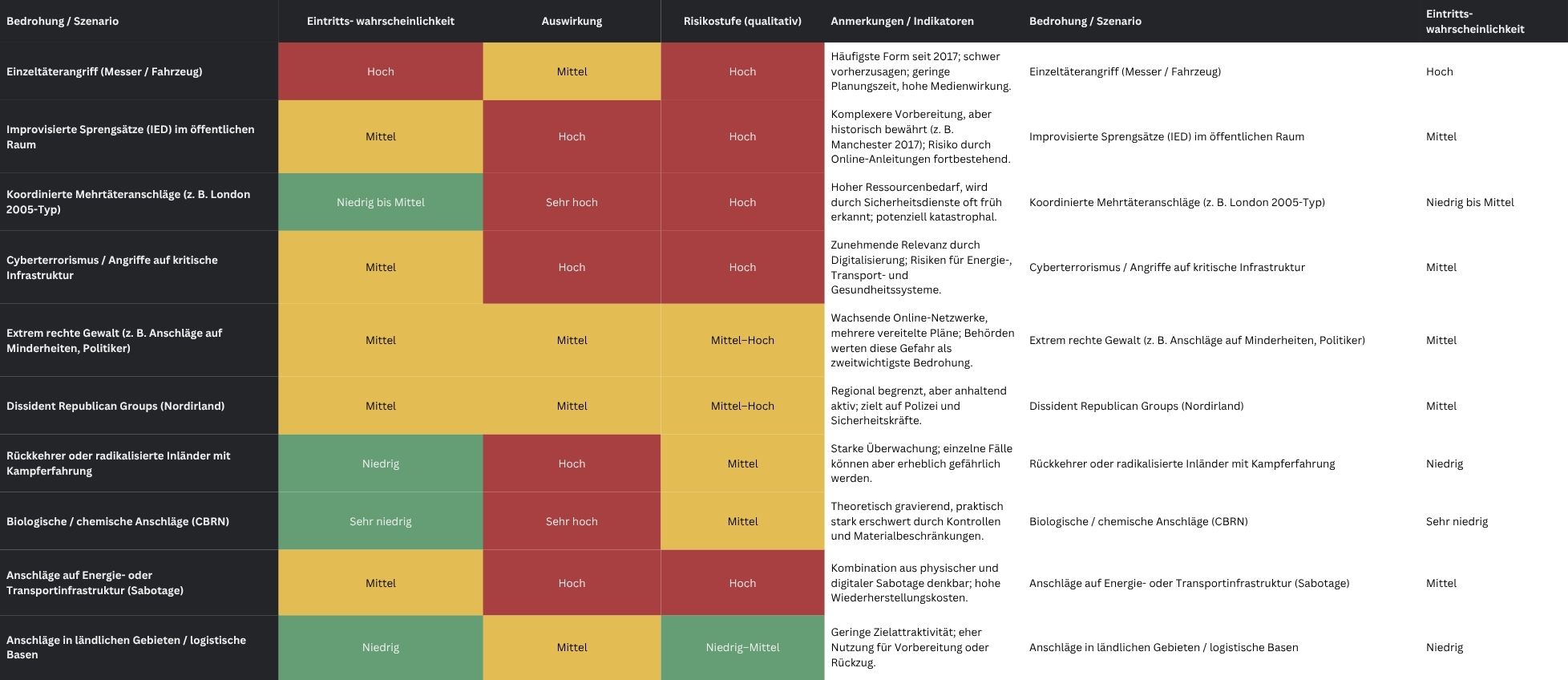 (c) gezielten Beeinflussungs- und Sabotageaktivitäten durch feindliche Staaten, die das Sicherheitsumfeld zusätzlich komplizieren. Die Sicherheitsarchitektur ist darauf ausgelegt, ideologieübergreifend (threat-agnostic) zu arbeiten, da Motivation und Taktik sich rasch verschieben können.